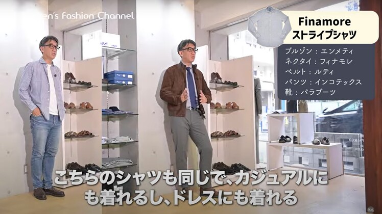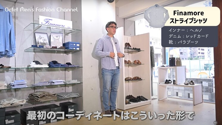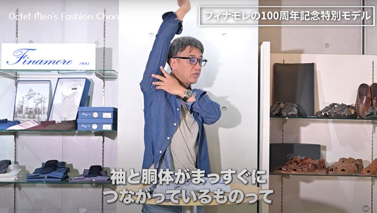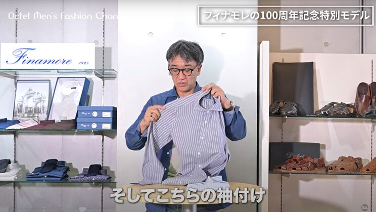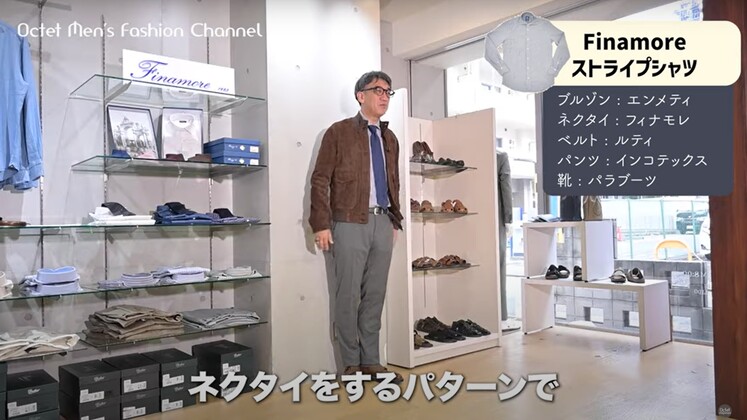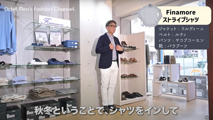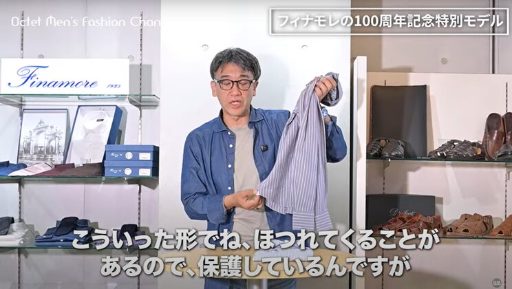 ぜひ、こういった形のアイテムでフィナモレ(Finamore)のシャツの良さを感じていただきたいですし、カジュアルからドレスまで幅広く着こなせるという点もありますので、ぜひね、自分なりの着こなしを楽しんでいただけたらいいなという思いと共に、このイタリアメイドならではの優しいスタイリングも、また楽しんでいただければ嬉しいです。