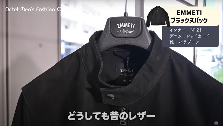 イタリアのブランドなんですが、僕はこのエンメティ(EMMETI)のレザーブルゾンを、エレガントで大人の男性が着るとすごくカッコいいアイテムにしたブランドだな、と感じています。