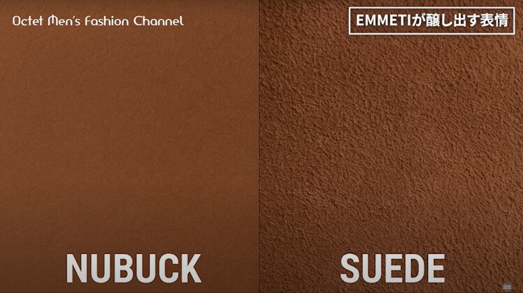 ヌバックとスエードなんですが、やっぱりヌバックの方がすごくエレガントなイメージがあります。レザー自体も高級で、お手入れはちょっと大変なんですけど、きちんとケアしながら着こなしていただければ、スエードよりもずっと丈夫で長く愛用できますし、この独特の表情も楽しめるんですよね。