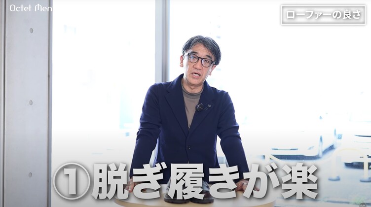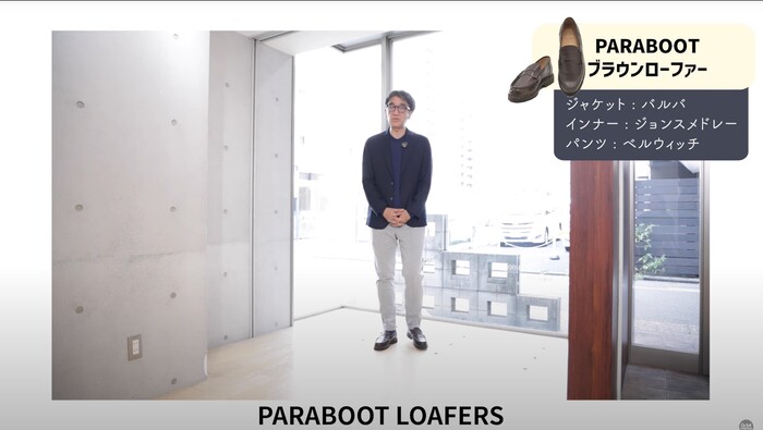 ここ最近は、自分のコーディネートをご紹介する動画の中でもよく登場しているので、ご覧いただいている方は「こういうシンプルでベーシックなローファーなんだな」というのを、すでに感じ取っていただいていたのではないかと思っています。