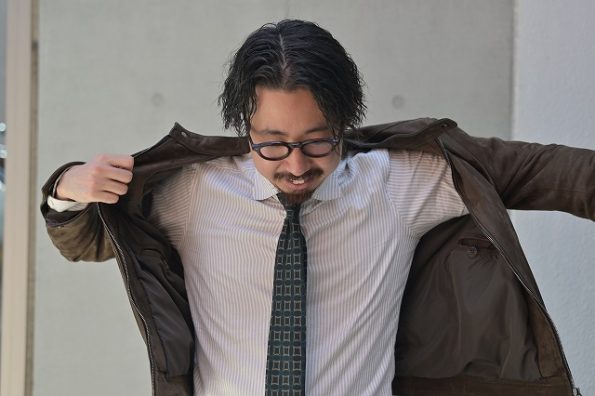 ↑シャツ着てタイドアップ合わせも違和感がない
