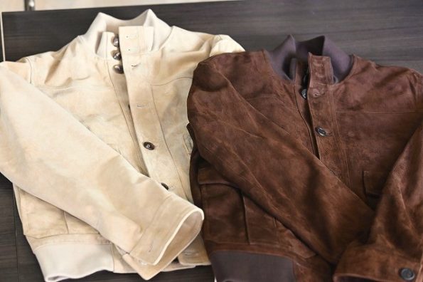 A1型フライトジャケット 左:ベージュ(カーフスエード) 右:ブラウン(カーフスエード)