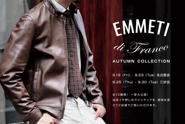 9/19(金)から9/23(火)までは当店のEMMETIラインナップを一挙OCTET名古屋の店頭で見れるようにしてますので、少しでも興味がある方は見て試着しにきてくださいね!※9/25(木)~9/30(火)の期間は三好店で展開