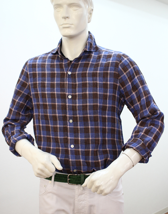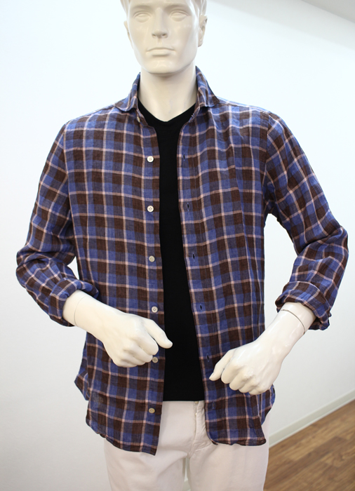 フィナモレ/Finamore 大人のチェック柄リネンシャツです。