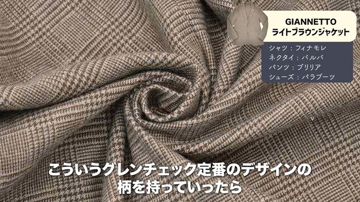 そんな中で、このようなグレンチェック柄を1枚持っておくと、コーディネートの幅がぐっと広がりますし、実際すごく使いやすいアイテムだと感じています。ということで、今回は最初の提案として選んでみました。