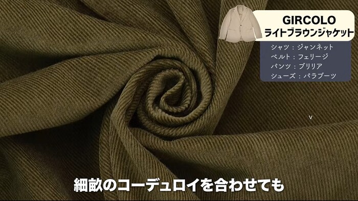 インナーに細畝のコーデュロイを合わせると、ジャケットが薄手のウールやコットンの場合、素材感だけが少し浮いて見えてしまうことがあります。