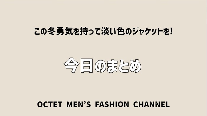ぜひ、重くなりがちな冬のコーディネートも、ビジカジ・スマカジのシーンでは、ライトカラーのジャケットを取り入れて、明るめのコーディネートを楽しんでみましょう!! ということでした。
