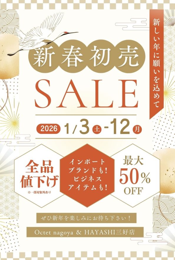 2026/1/3(土)〜1/12(日)まで『新春初売りSALE』を開催いたします。