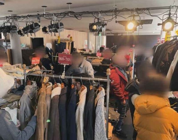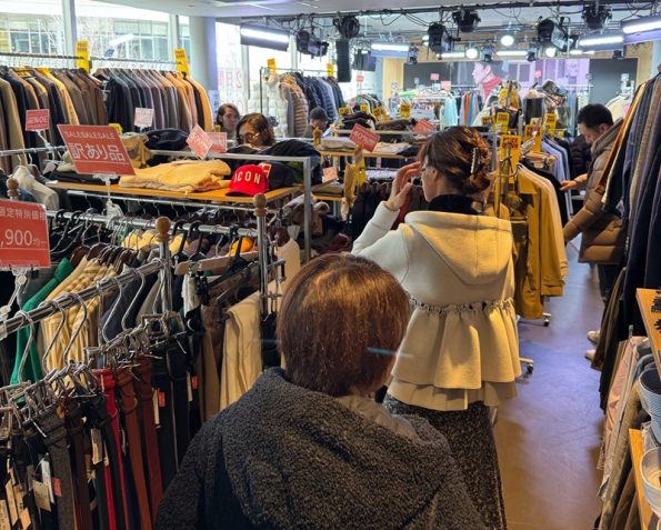 普段は漫談やトークライブが行われている2F「納屋橋劇場」を2日間限定で特別に使用し、会場いっぱいに服をズラッと展開。LARDINIやHERNO、REPRAYなどのラグジュアリーアイテムに加え、「訳あり品」「サンプル品」など、普段は店頭に並ばない商品も大放出!