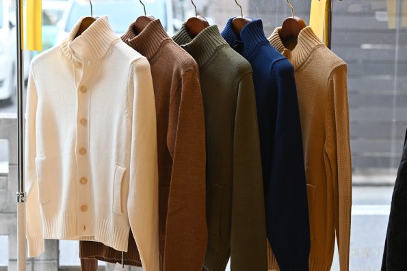 【真中~右:ザノーネ:カーディガン(コットン地)→30%OFF 77,000円→53,900円(税込)】