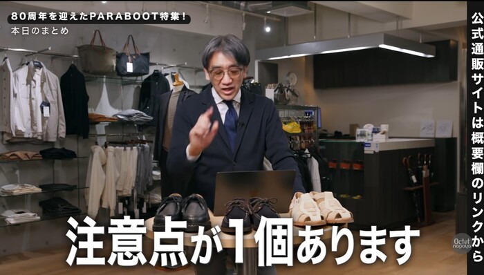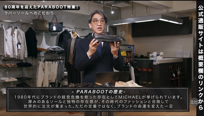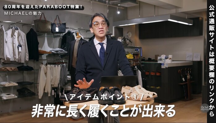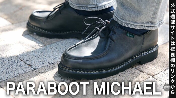 こういう“カジュアルをベースにしつつ、少し品を足す”みたいなバランスが作れるのも、パラブーツ(Paraboot)の良さだと僕は感じています。オン・オフどちらでも使える万能性があって、シーンを選ばず履ける一足です。ぜひ皆さんにも、この80周年を迎えた『ミカエル(Michael)』を手に取っていただけたら嬉しいです!!