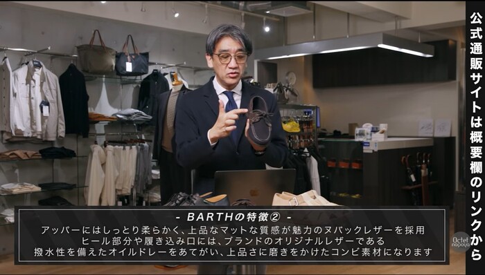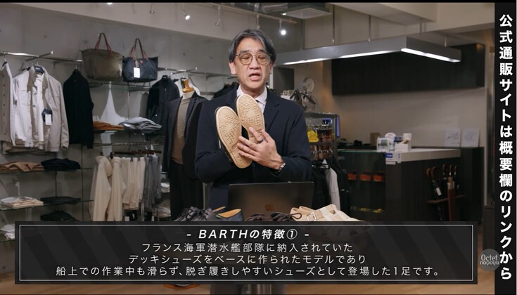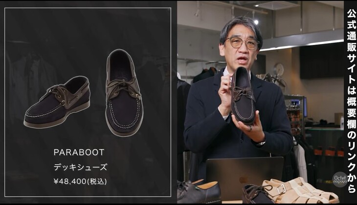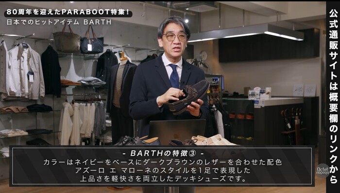 ここからはですね、この80周年を迎えたミカエルを擁するパラブーツ(Paraboot)なんですけれども、この春夏ぜひチェックしてほしいモデルがいくつかあります。まずは『バース(Barth)』ですね。パラブーツ(Paraboot)が日本でヒットするきっかけを作ったのは、この『バース(Barth)』というデッキシューズのモデルだと僕は思っています。