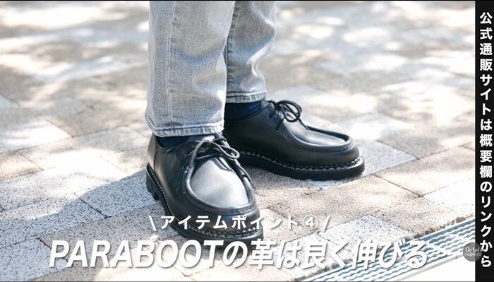 実際、この少し分厚いラバーソールが評価されて、戦後は一時パラブーツ(Paraboot)の人気が落ち込む時期もあったそうなんですけれども、その中でイタリアで『ミカエル(Michael)』が評価されて一気に火がつき、そこからパラブーツ自体も息を吹き返したという歴史があります。