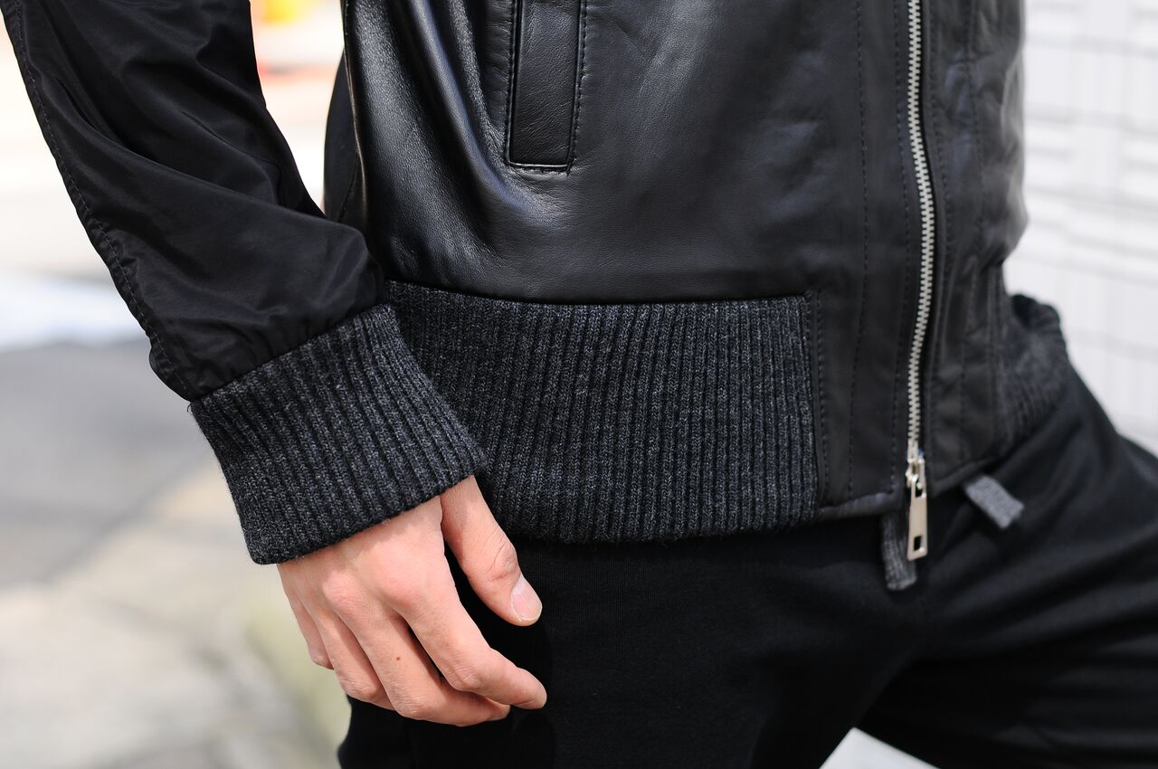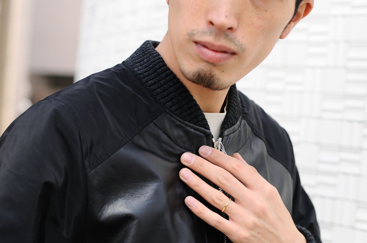 レザーとナイロンの異素材コンビのMA1ブルゾンです。