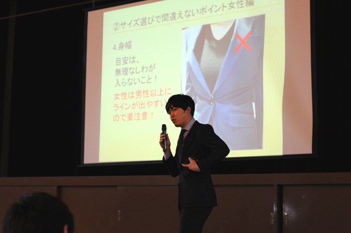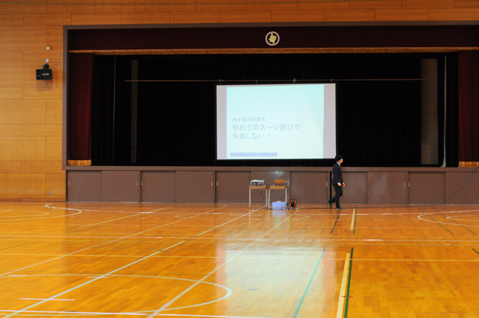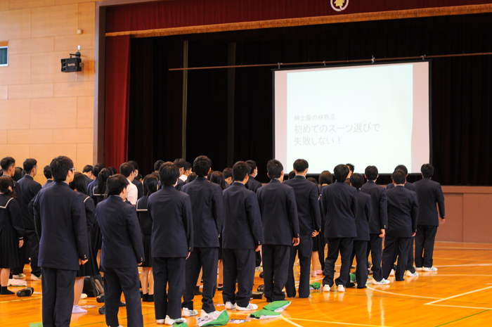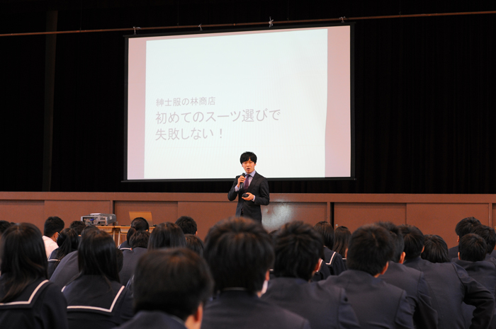 高校生の皆さんにスーツの正しい着こなし方をお伝えする授業を