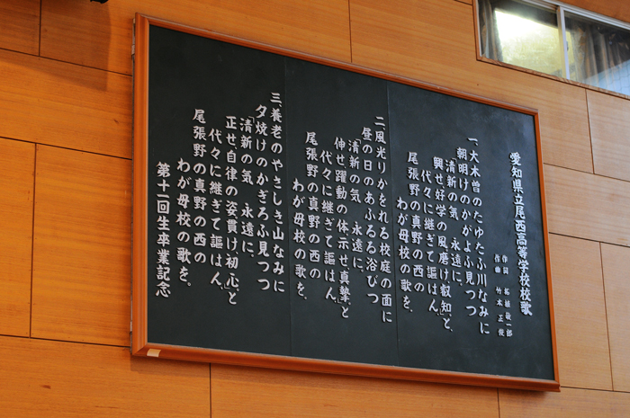 学校の体育館と言えばそういえば校歌がかかげてあり