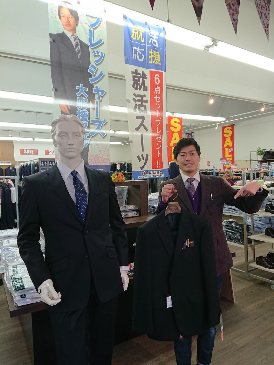 サイズ選びとシーンに合ったスーツ選びをお伝えください♪