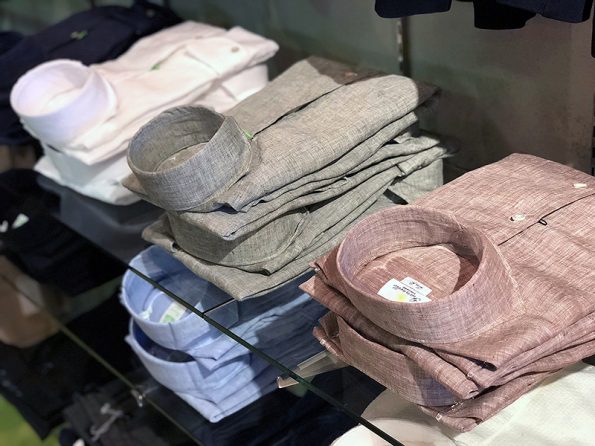 袖を後付けする立体的な仕立てや鳥の足に似たボタンの縫い方(ザンパテ・グリアート)などを得意とするイタリアンシャツの伝統技術をベースとしながらも、南イタリアの陽気さなど港町らしさを得意とし、リラックスした心地良い雰囲気、エレガントでラグジュアリーなテイストをお楽しみ頂けます。