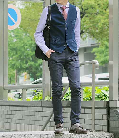 これからの時期ですと、ジャケットなしでジレとシャツという、組み合わせもいいですね♪