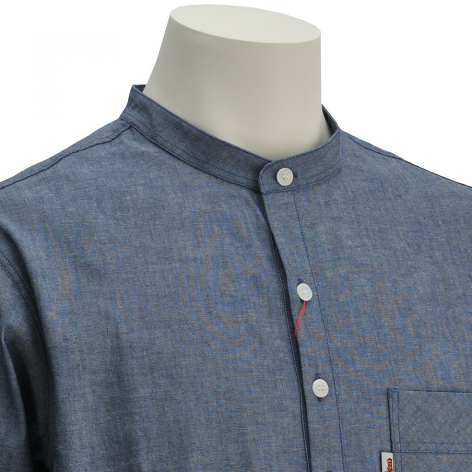 ノーカラー(襟のないシャツ)と一緒くたにされがちなのですが、バンドカラーにはしっかりと襟があり、スタンドネックになっております。