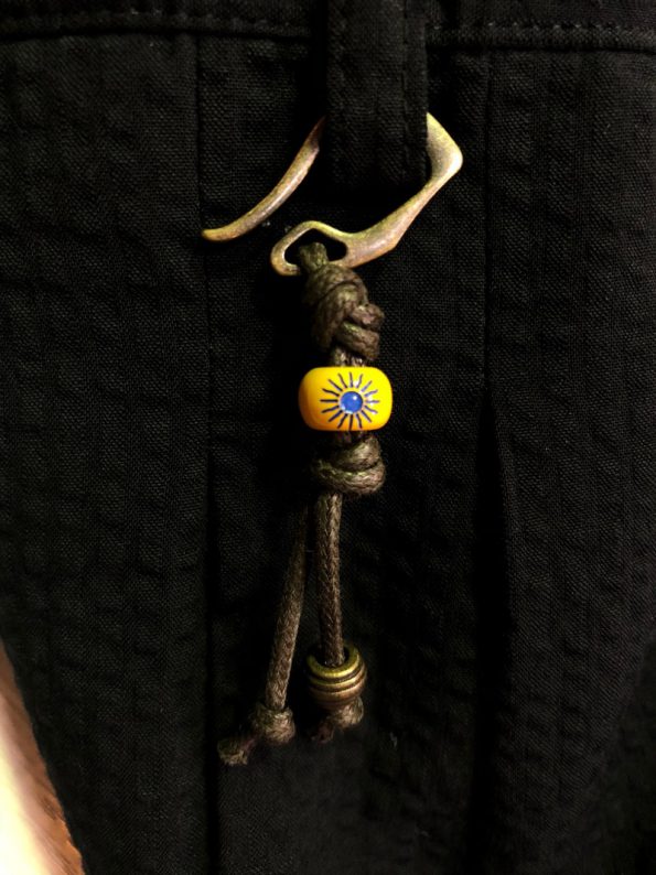 ループに引っ掛けてある手作りフック(ストラップ)。