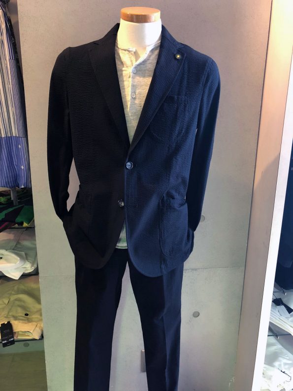 今日は新作の夏に欠かせないシアサッカー生地のジャケットとパンツ。