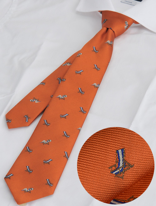 スーツ・ジャケットの中に仕舞い込んでしまえばただのレジメンタル柄、でも本当は知らないところで遊び心がある、そんな一本です。