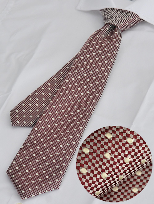レッドのギンガムチェックにホワイトのドット…、柄に柄を重ねてもここまでしつこくならなく使いやすいアイテムに収まったシンプルなネクタイ。