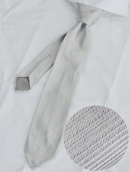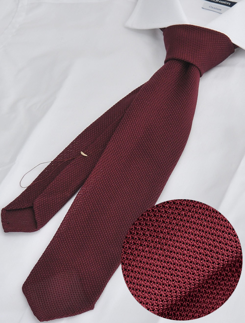 シルク100%で作られたニットタイ。シルクは、天然繊維の中でも最も光沢感がある素材だとされていますが、成る程、流石、と言わざるを得ません。