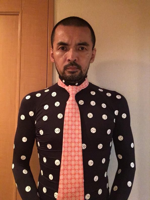 で、もちろんネクタイ部も装着し、FACEBOOK友達に公開すべく記念撮影。