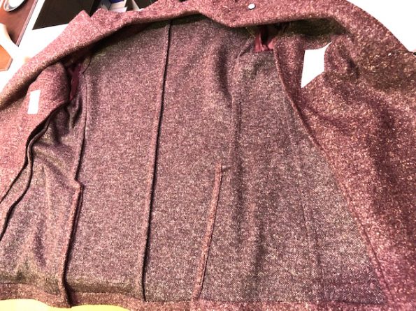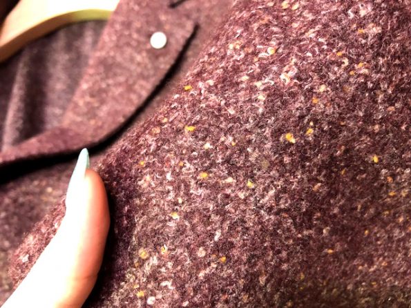 秋らしいボルドー色で、触って頂ければすぐにわかる厚手の温もりある1着。
