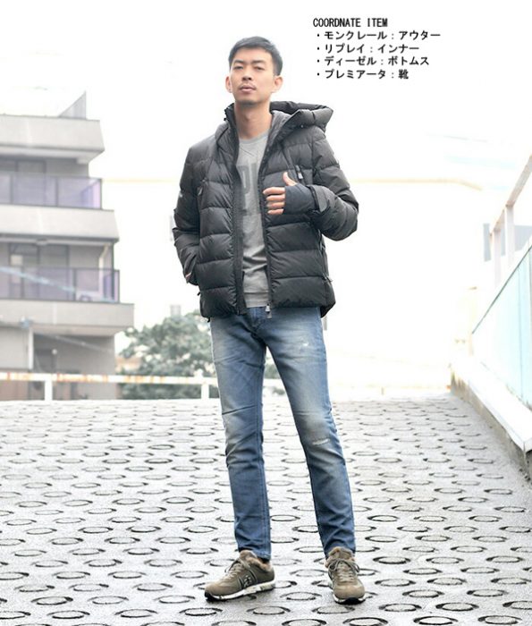 シンプルにデニムにロンTにダウンジャケットという組み合わせ。