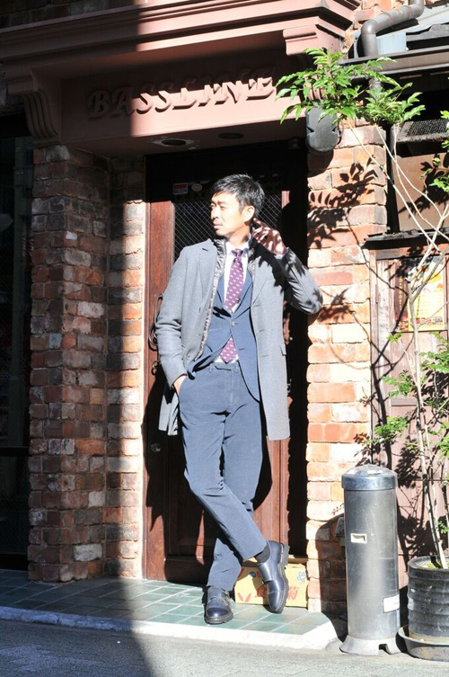 インナーには爽やかな風合いのボーダーバスクシャツに