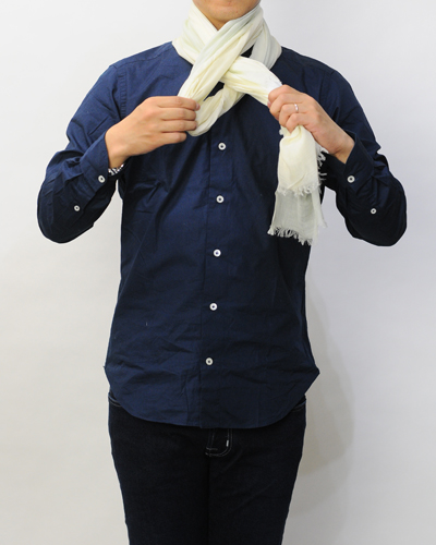 首元をがっちりと守る冬には嬉しい巻き方です。