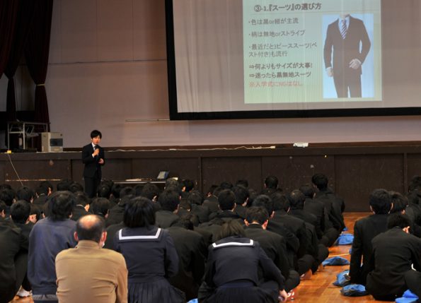 就活を迎える大学三年生向けに就活時にスーツ着こなしマナーの授業へ!