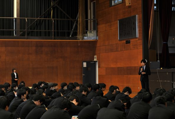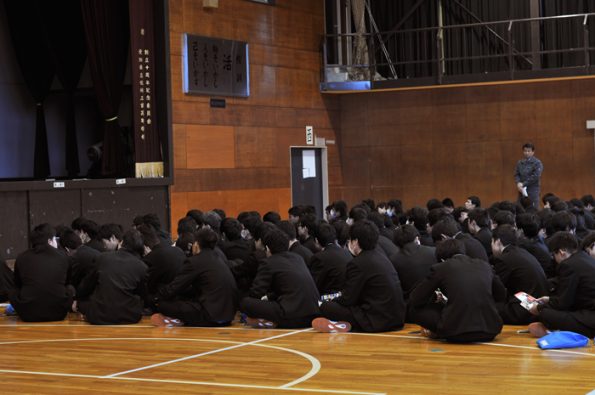 ネクタイの結び方も男子生徒皆にネクタイをお配りして