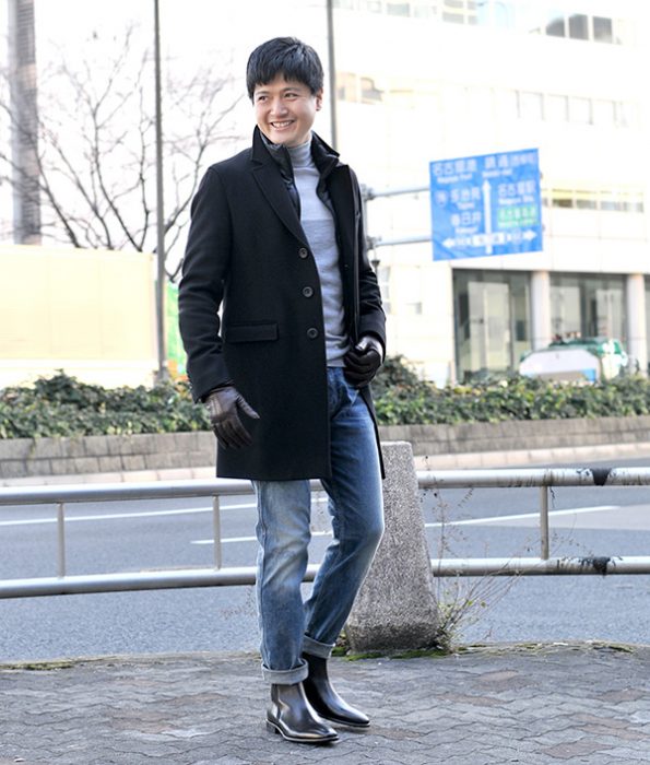 全体的にスリムなシルエットが印象的となっているコーディネート。