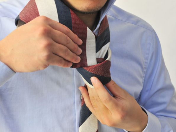 ネクタイの結び目を持っていってシングルノットの完成です!