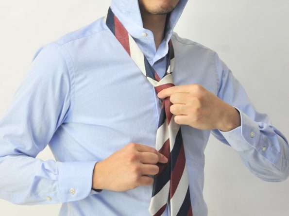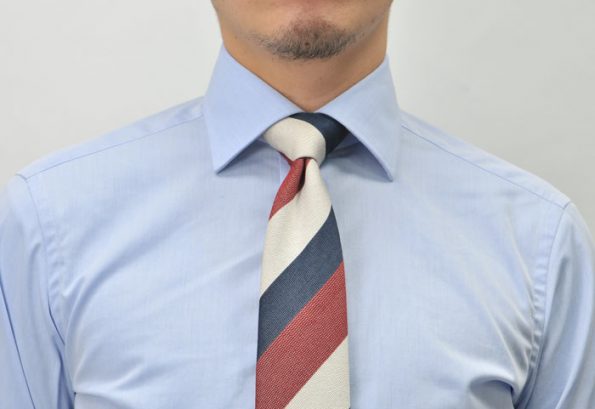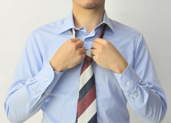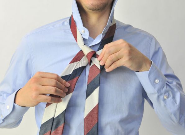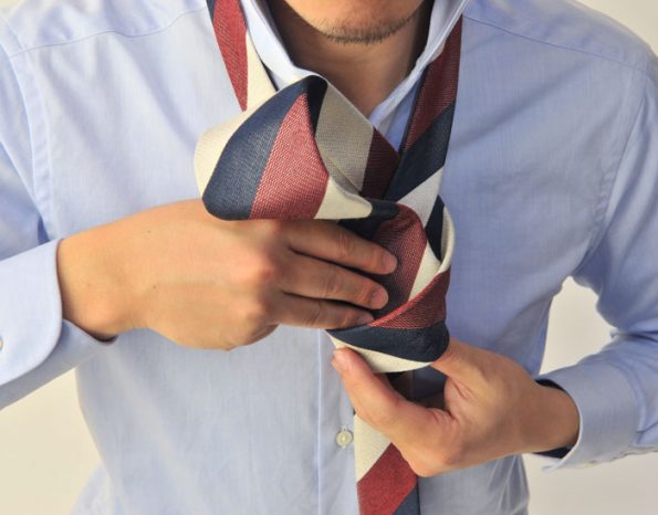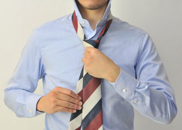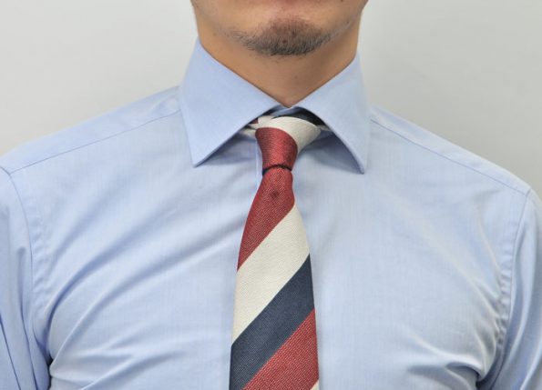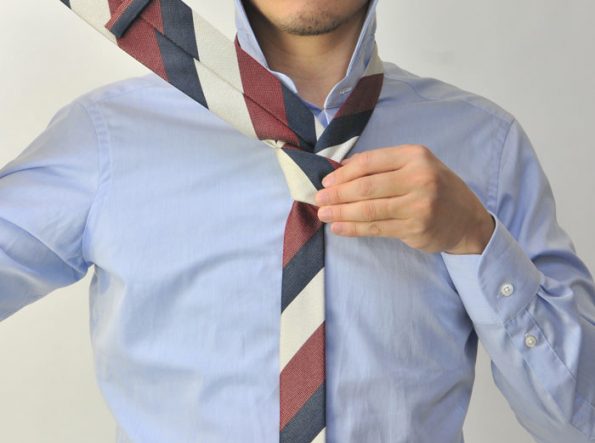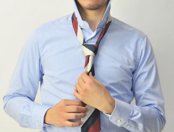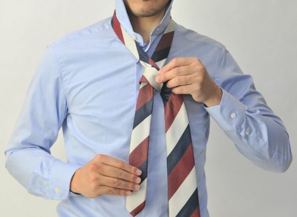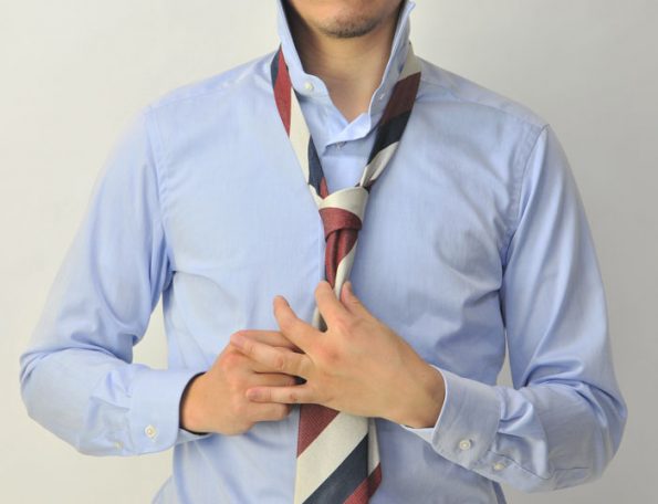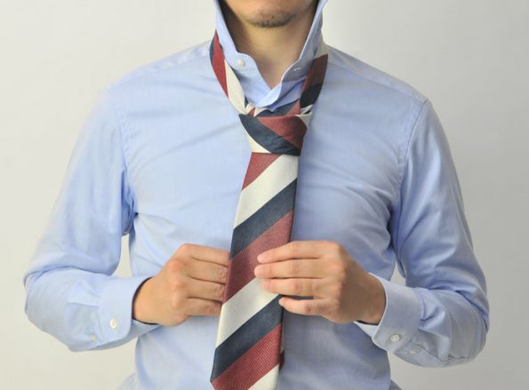 結び目が逆三角形のこの結び方は襟元におさまりがいいと言われることがあります。