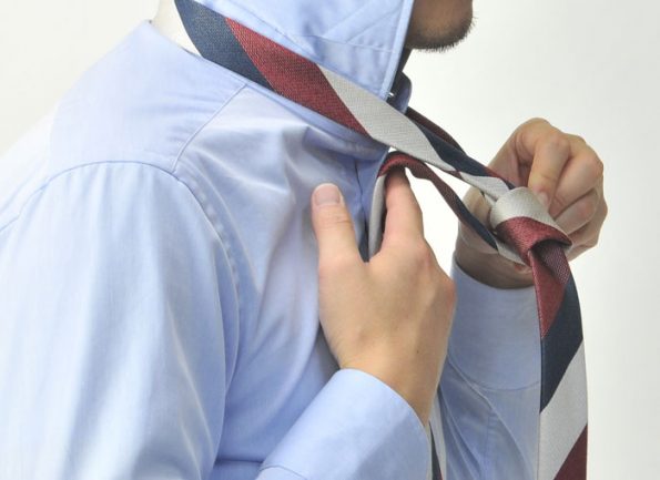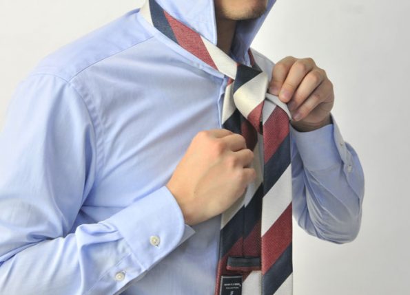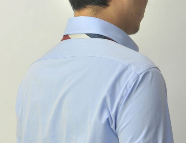 ※シャツ襟を寝かせたときにネクタイがシャツ襟から出てしまう件は、