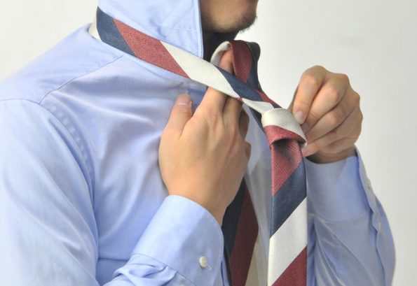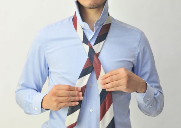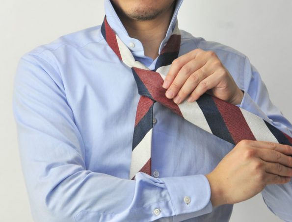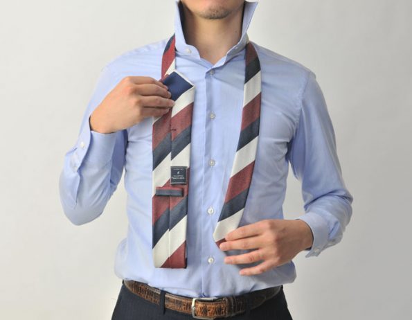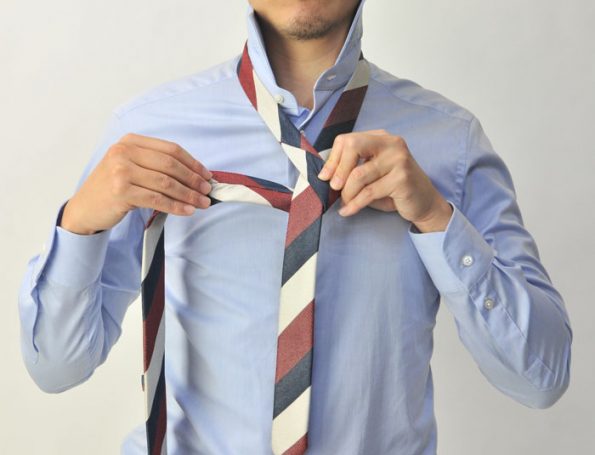 この時の長さが最適でないと最終的なネクタイの長さがアンバランスになってしまいます。