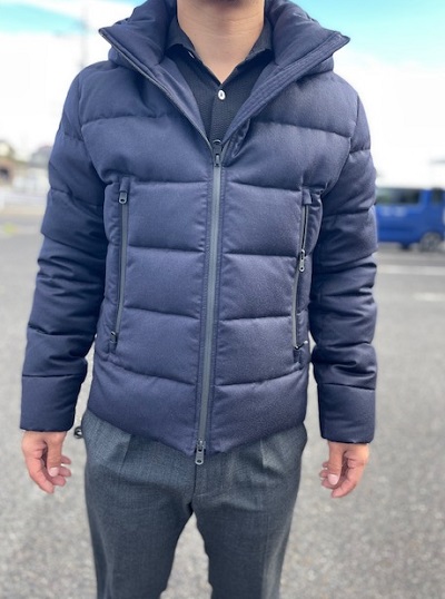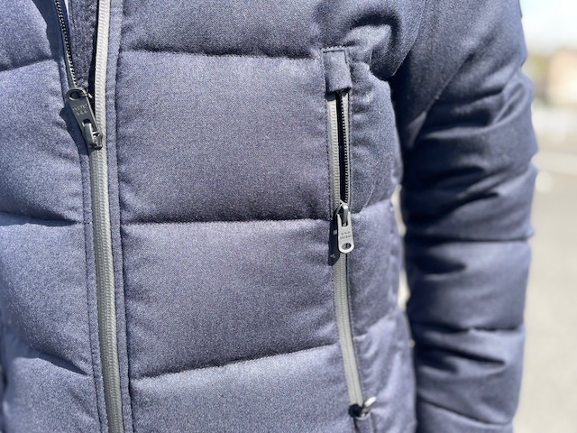 ジップは、止水ジップを採用しておりドレッシーな印象のあるウール素材のダウンジャケットの中にトレンドのスポーティーな雰囲気を細かな部分で取り入れております。また、アゴルドに使用されている止水ジップは、YKKイタリアしか出来ない塗料を施し、マットなラバー調になっております。スラックスやコットンパンツなどキレイ目パンツとの組み合わせはもちろん抜群ですが、デニムやスウェットパンツなどのカジュアルなアイテムとの相性も良いディテールとなっており、幅広いコーディネートで愛用できます。