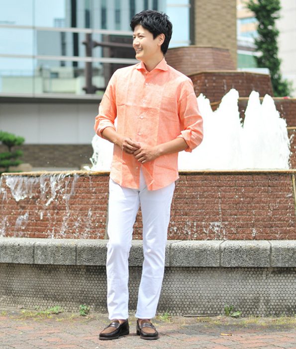 それでは『リネンシャツ』を使ったコーディネートのご紹介を