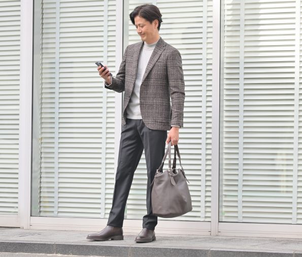また、スリムな輪郭が美しく描かれ、適度に計算されたゆとりと、立体的な仕立てによるフォルムは高い縫製技術の賜物です。優雅で、上品なシルエットは、ミドル世代の男性にぴったりだと思います。