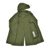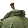 襟元にはファスナーで取り外しが可能な、ドローストリング付きフードをあしらっていて、風などの強い日には、すっぽりと頭まで覆って悪天候を凌ぐ事が可能です。また、伝統的なディティールであるチンストラップは、襟を立てて留めておく事で、更なる安心感を。また、フードの取り外しにより、装いのイメージに合わせた着こなし方をお楽しみ頂けます。