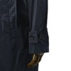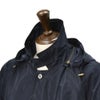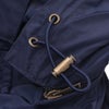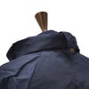 襟元にはファスナーで取り外しが可能な、ドローストリング付きフードをあしらっていて、風などの強い日には、すっぽりと頭まで覆って悪天候を凌ぐ事が可能です。また、伝統的なディティールであるチンストラップは、襟を立てて留めておく事で、更なる安心感を。また、フードの取り外しにより、装いのイメージに合わせた着こなし方をお楽しみ頂けます。
