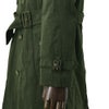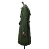 フロント部分には、ショルダーストラップであるエポーレットやガンフラップ、雨風を防ぐカギフック、スリーブストラップを施しており、バッグ部分にはアンブレラヨークを装飾しております。又、トレンチコートの特徴の一つとなるウエスト調節ベルトには、手榴弾をぶら下げる為のDリングも取り付けるなど、1960年代のデザインをそのまま取り入れており、漢らしい風格をしっかりと表現したコートに仕上がっています。レインコートならではの撥水機能、そして裏地も施すことで、真冬でも安心して着用できる防寒力を持ったトレンチコートです。