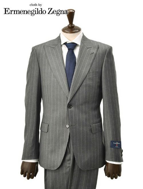 ゼニア生地の品質は世界でも指折り。オーストラリアから最高級の天然繊維を買い付けて、自社工場にて生産しています。 最高級として名高い生地はしなやかで、軽く、イタリアらしい上品な艶が魅力です。 本品は、ゼニアのマテリアルの中でも定番中の定番と呼ばれるレーベル「ELECTA / エレクタ」。ピッチの細いストライプ柄を浮かべたドレッシーなスーツのご紹介です。