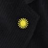 上品な表情を作り上げているフロントのノッチドラペルには、ブランドを象徴する太陽マークのラペルピンがアイコニック輝き、バランスの良いVゾーンを描き上げました。
