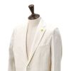 フロントは、バランスの良い深さのVゾーンを作り上げた2つボタンフロントと、ベーシックなノッチドラペルで構成されており、クリーンなニュアンスで綺麗目な印象を漂わせました。